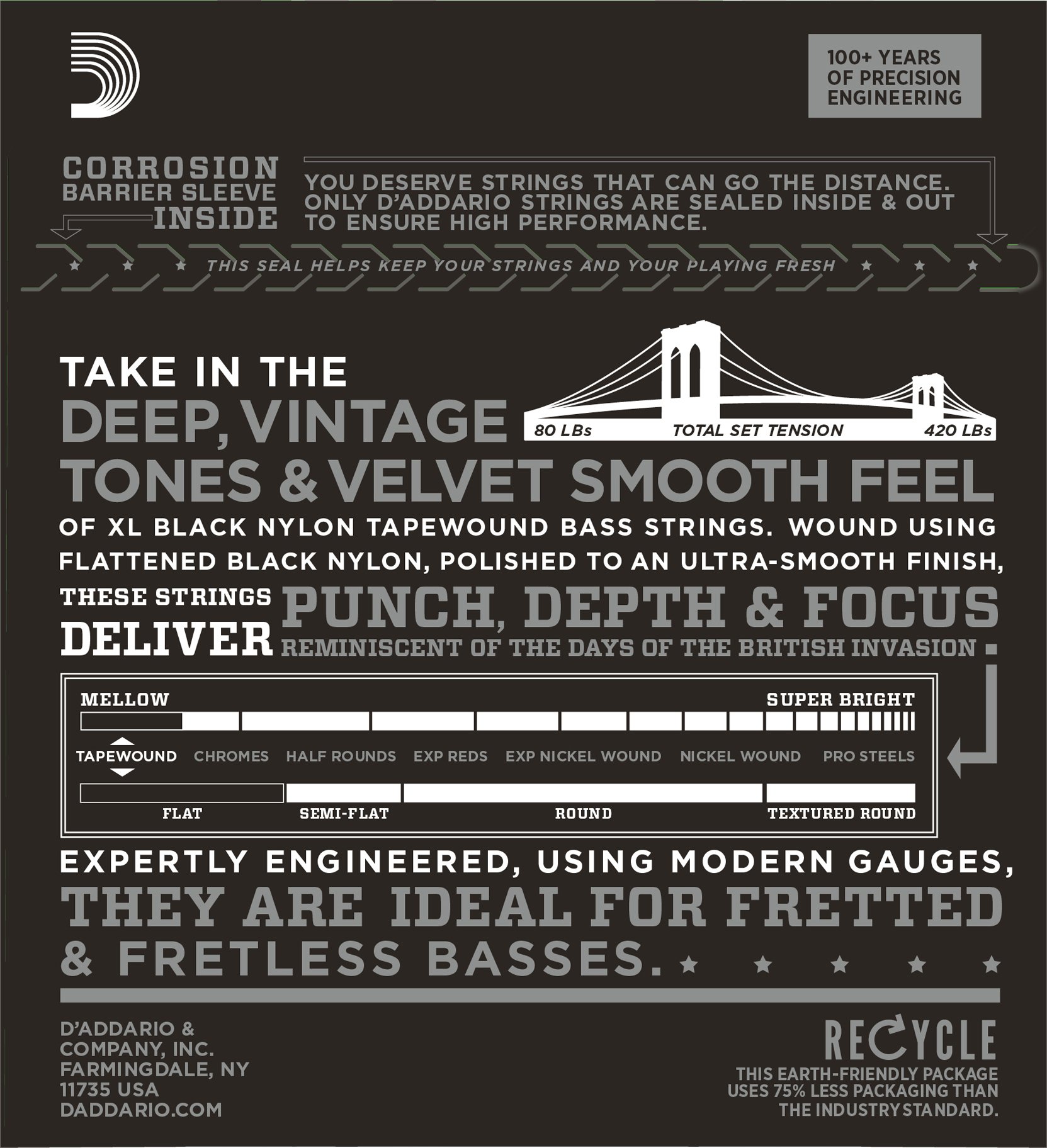 D Addario ETB92 Tapewound Bass Guitar Strings Medium 50-105 Long Scale