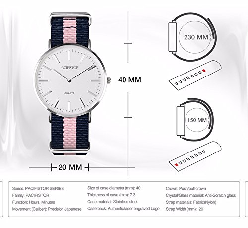 -. Binding : Watch -. Brand : Infantry -. Color : blue,pink -. Department : Mens -. EAN : 4897046818708 -. Feature : Imported.Movement (Caliber):Japanese Quartz / Material:Silver Stainless Steel Case and Comfortable Multi-Color nylon Band. / Size of band lug (mm): 20 Size of band (mm): 150-230 Size of case diameter (mm): 40 ;Thickness of case (mm): 7.3 / CLASSIC CASUAL DESIGN: analog dress watch casual design, Fashion nylon strap with the simplicity of business casual, bring you back to the classic. Also make it a great gift for family or friends. / Warranty:1 Year and 30 days exchange, returns and refunds accepted. -. Label : Pacifistor -. Manufacturer : Pacifistor -. Model : PX-027-05 -. MPN : PX-027-05 -. PartNumber : PX-027-05 -. ProductGroup : Watch -. ProductTypeName : WATCH -. Publisher : Pacifistor -. Studio : Pacifistor -. Title : PACIFISTOR Mens Womens Analog Quartz Wrist Watch with Casual Pink Navy Striped Nylon Nato Band