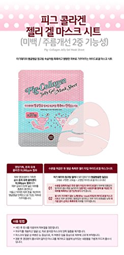 -. Feature : This pig skin hydrogel mask sheet makes the skin firm and smooth. / Infused with pig collagen 10,000ppm for skin elasticity and moisture. / Dual functional mask sheet of whitening and anti-wrinkle.