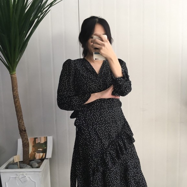 잔도트 패턴의 랩 원피스에요