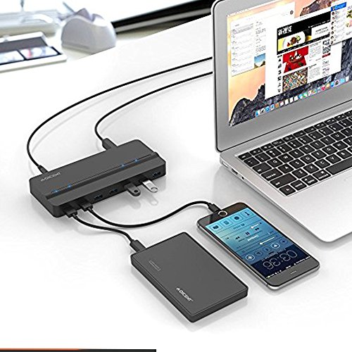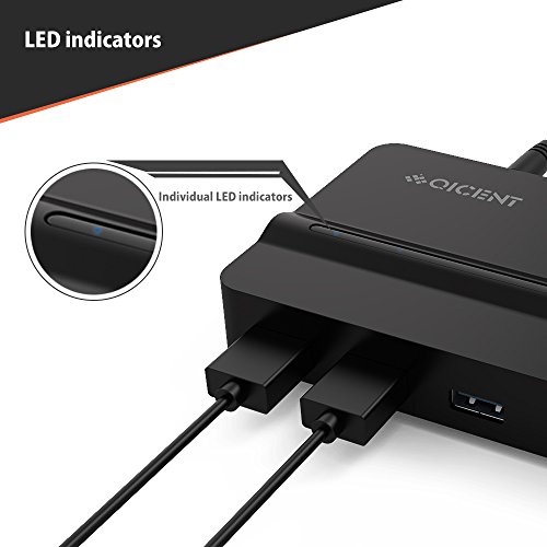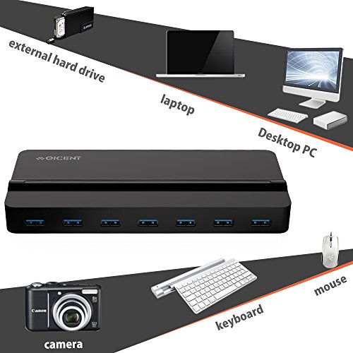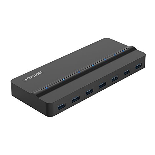 QICENT USB Hub 3.0 Powered 7 Super Speed USB 3.0 Ports and 30W 12V 2.5A AC Powered Adapter Best Universal for Mac, Macbook, Macbook pro, PC, Computer - Black