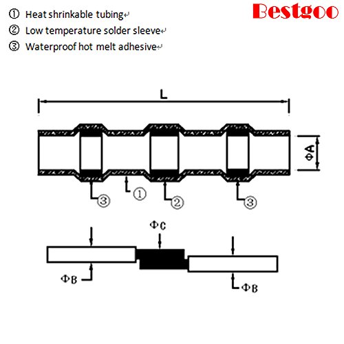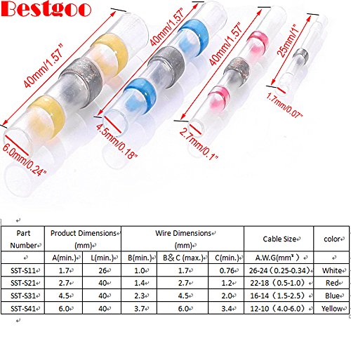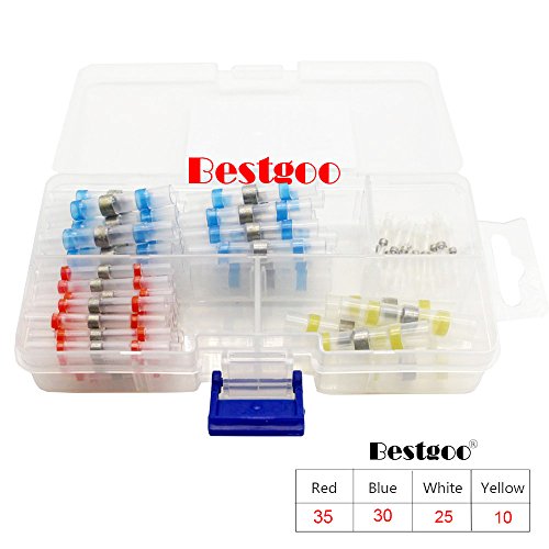 Bestgle 100 Pcs Solder Seal Heat Shrink Insulated Electrical Wire Butt Connectors Terminals Kit , Waterproof Automotive Copper With Case(35Red, 30Blue , 25White & 10Yellow)
