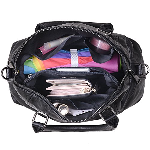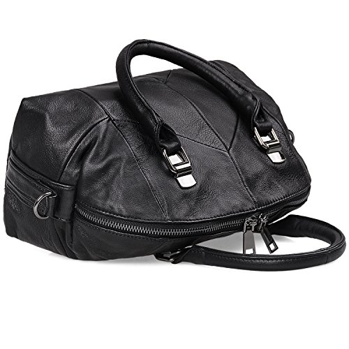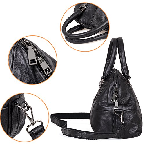 -. Feature : Design: real sheep leather / black color / durable hardware / polyester lining/ top zipper with flap closure / stylish belt style handbag. / Dimension:(L*H*W)28*20*13cm/11"*8"*5" removable shoulder strap: long enough to be carried as crossbody bag/ compartments:,1*interior zip pockets, 2*item slots,1*exterior back secure pocket / Carry styles: top handle bag / crossbody bag / shoulder bag / satchel / tote bag / Occasions: basic daily use / dating / schooling / amusement park / 【Jack&Chris】is a trademark registered in the US, UK and etc. Our brand has gained recognition and protection from amazon. We will not allow any forms of infringement. Please pay attention to avoid purchasing counterfeits from other seller.