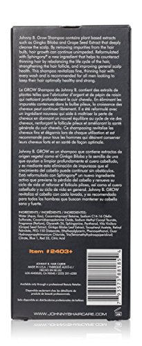 Johnny B. Grow + Shampoo is an amped-up version of our popular Grow Shampoo. Contains plant-based extracts such as ginkgo, biloba and grape seed extract that deeply cleanse the scalp. Reformulated with a new active ingredient Sphingony, which may prevent hair loss by rebalancing the life cycle of the hair, strengthening the hair follicle and improving scalp health. This shampoo is recommended for all men looking to keep hair optimally healthy and strong. You should see results in 21 days!