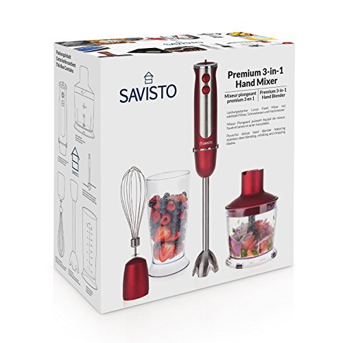 Suchen Sie nach einem Hochleistungs Mixstab der Sie schnell mixen, zerkleinern und Pürieren lässt? Savistos vielseitiger neuer 3-in-1 Mixstab, Schneebesen und Universalzerkleinerer macht es ganz einfach Zutaten vorzubereiten.