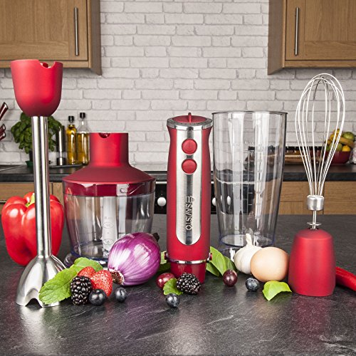 Der Savisto 3 in 1 elektrische Stab Mixer mit seinem ergonomischen gummierten Griff bietet verschiedene Geschwindigkeitsstufen und eine Turbo Taste für härtere Zutaten.