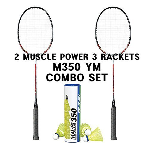 -. Feature : ラケットを含む2 Muscle Power 3本、チューブ1本のMavis 350イエローミディアムshuttlecock / 初心者および中級プレーヤーにも、かんたん便利なコンボセット / 良好で、ポータブル屋外アクティビティーの準備セットバドミントン