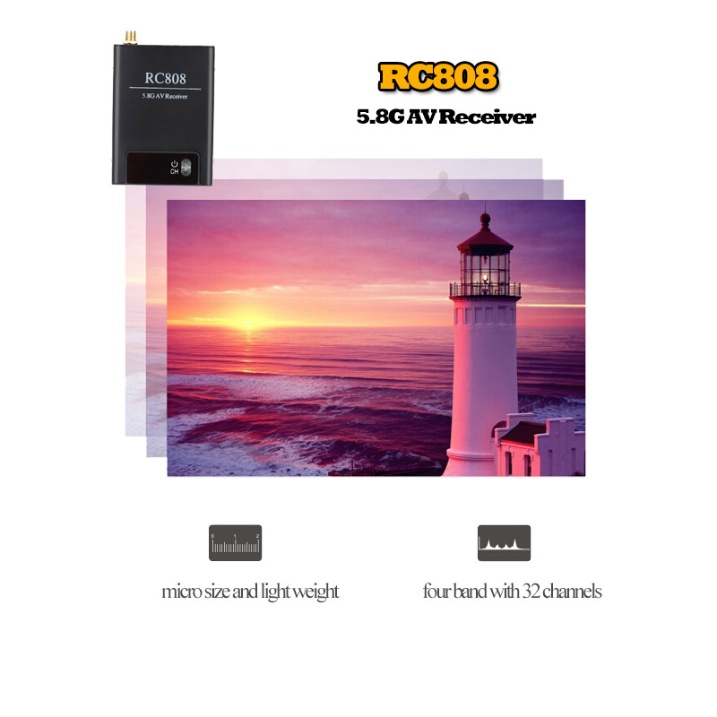 RC808 5.8G 32CH AV Wireless Image Transmission Receiver with LED Indicator for FPV Aerial Photogaraphy.