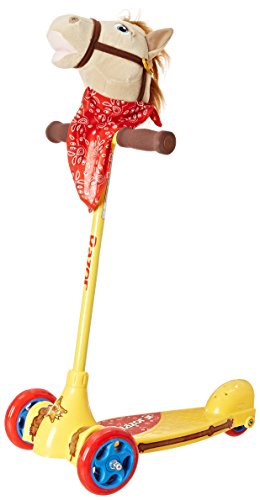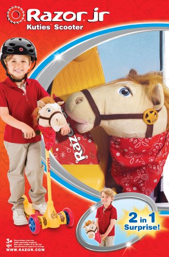 -. Feature : Kuties are the perfect first scooters that come with a 2-in-1 surprise! / Features 2-in-1 toy scooter and hobby cowboy horse for boys / Plush buddy horse comes with beautiful decorative embroidery details / 3-wheel design for greater stability / Patent pending "tilt to turn" steering feature helps tots learn to steer