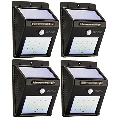 Tagital Solar LED Lights 20 LED Wireless Waterproof Motion Sensor Outdoor Light for Patio, Deck, Yard, Garden with Motion Activated Auto On/Off (4-Pack)