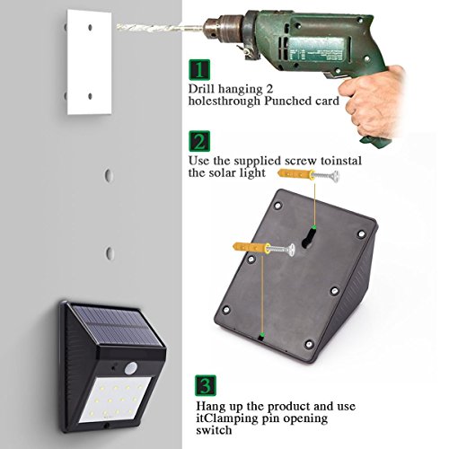 - 【Ultra-Bright】 Solar Pannel with 20 bright LEDs and the motion angle is 120 degrees which can provide excellent illumination and turn the dark space into a bright lighted space.