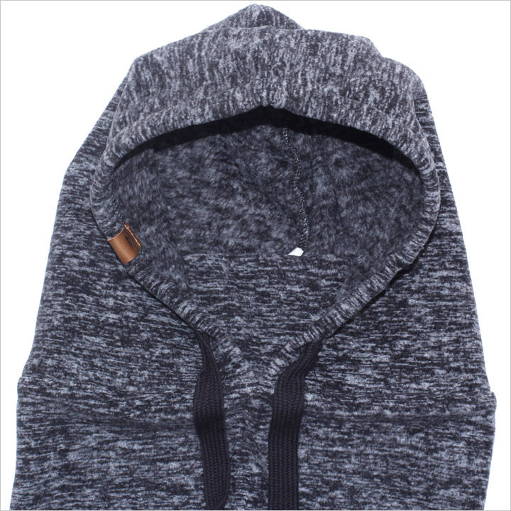 調整紐つきのフードとロング丈のネックウォーマーが一体化した防寒アイテムです。