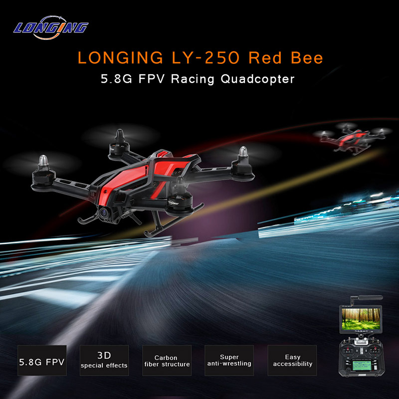 ?The LONGYING LY-250 Red Bee UAV racing quadcopter is easily build, rebuild, repair, and maintain, and the FPV racing quadcopter system which includes a light weight 250mm quadcopter and a high sensitive remote controller with a mounted LCD display to realize a long endurance thrilled FPV racing.