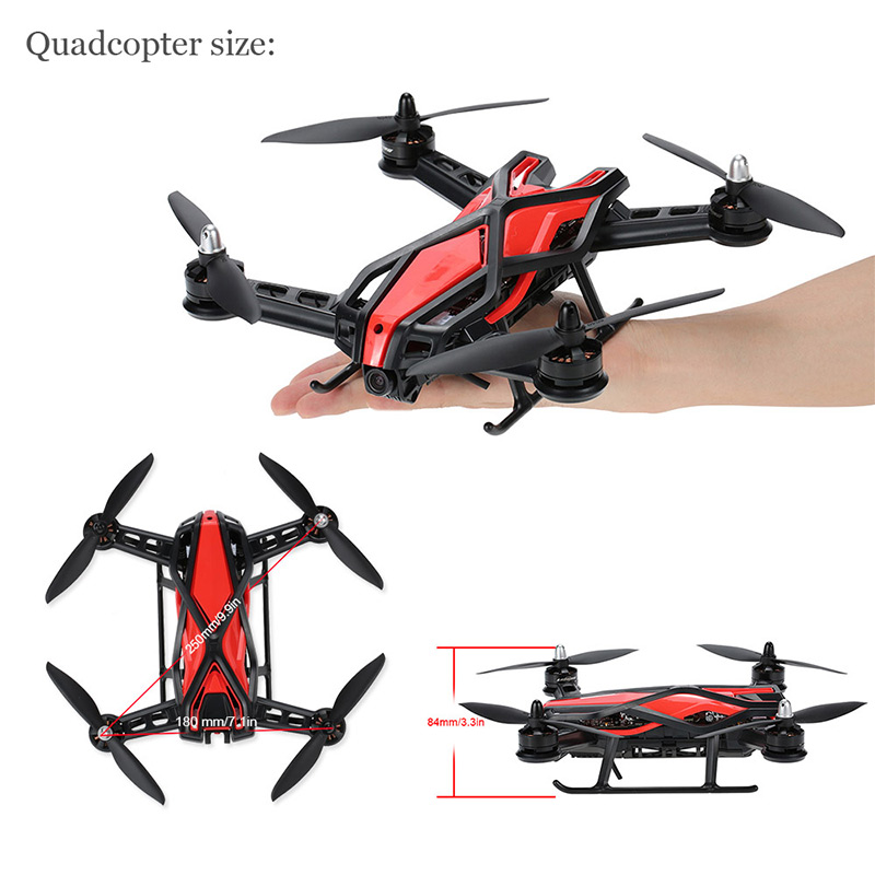 Specifications: Brand name: LONGYING Model NO.: LY-250 Red Bee Material: Carbon fiber Controller mode: Mode 2 Remote control frequency: 2.405 GHz -- 2.475GHz FPV transmission: 5.8G real-time Transmitter: LY-i6 7CH transmitter Motor: 2204 brushless 2300kv motor Propeller: 6040 propellers Flight control: LY-CC3D Receiver: LY-iA6 Main Controller: LY-250 main control board (included 4 ESC & BEC) Camera: 420TVL Max speed: 110 km/h Remote distance: about 1000m Flight Time: about 15mins Battery power: 2 * 3.7V / 2500mAh Li-ion (included) Battery of transmitter: 2 * 3.7V / 2500mAh Li-ion (included) Battery dimension: 65 * 18 * 18mm Item dimensions: 285 * 285 * 84mm Item weight: 415g