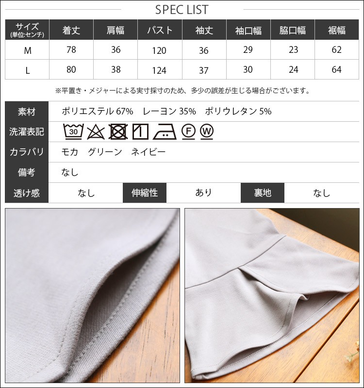 素材:ポリエステル67% レーヨン35% ポリウレタン5%