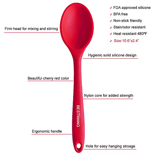 QUALITY YOU CAN COUNT ON: Bestwang's silicone cooking utensils are 100% FDA Grade and BPA Free. These heat resistant cooking tools can be used up to 480℉ and are non-stick friendly so you can mix and stir directly in your expensive pans. And they're stain and odor resistant so you'll enjoy them for years to come - they simply won't discolor, warp, melt or chip like your old plastic kitchen utensils or bamboo kitchen utensils.