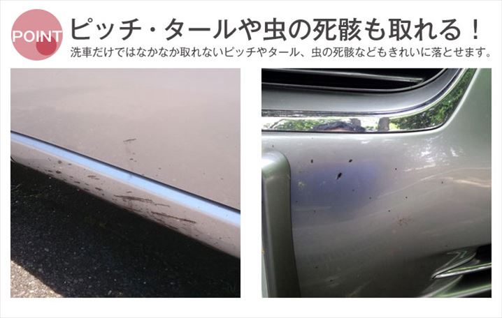 ●洗車だけではなかなか取れないピッチやタール、虫の死骸などもきれいに落とせます。