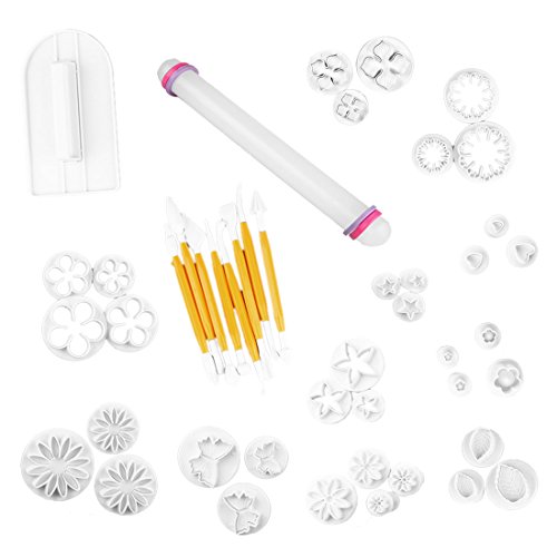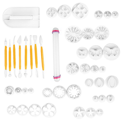 uxcell 14 Sets (46pcs) Cake Decration Tool Set Fondant cake Cutter Icing Plunger Mold Mould Sugarcraft Icing Decorating Flower Modelling Tools