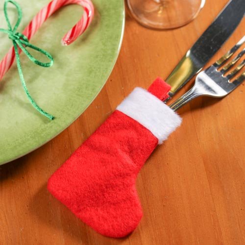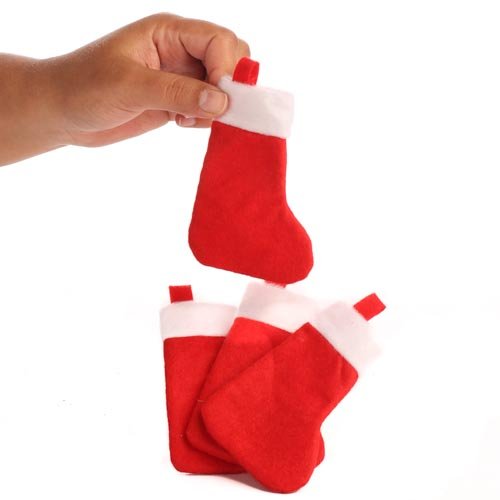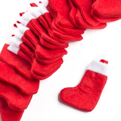 Group of 24 Mini Red & White Felt Holiday Stockings