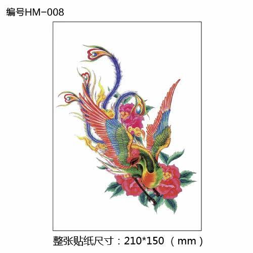 贴纸纹身贴彩色凤凰大图女生腰大花臂逼真手臂刺青贴背部