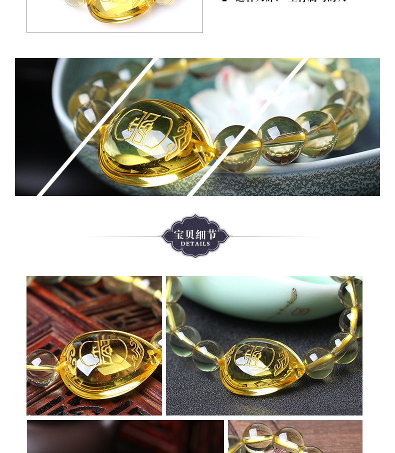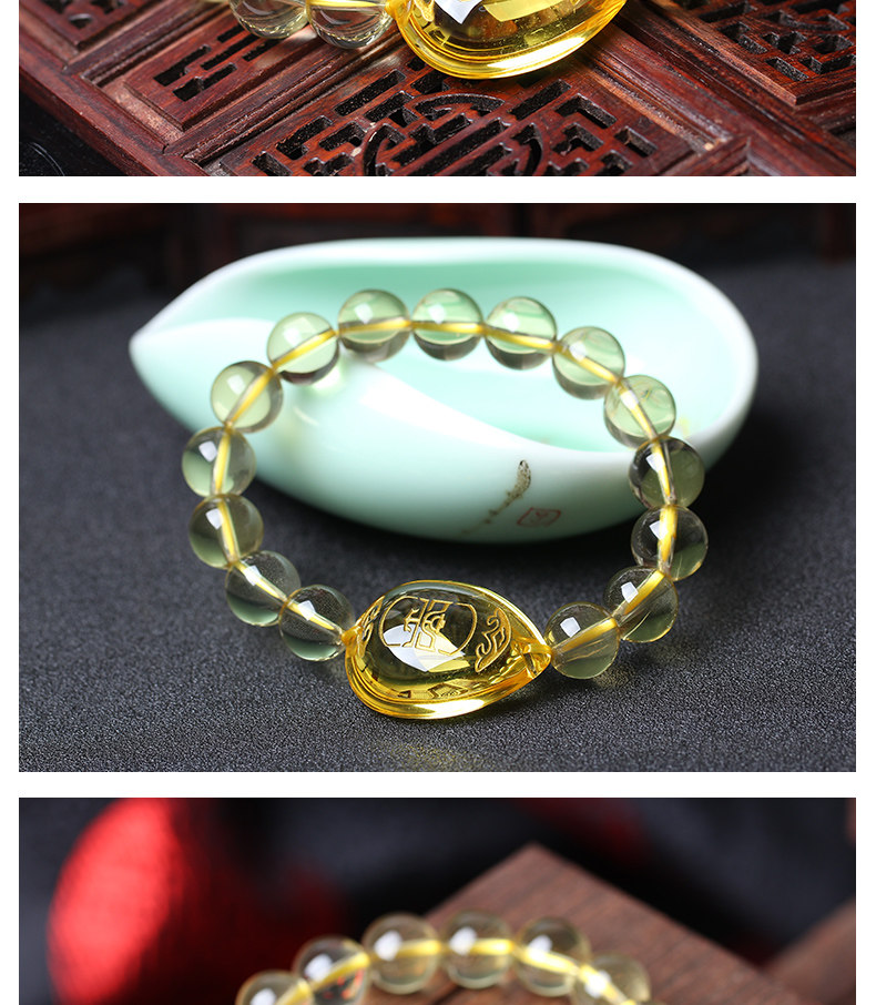 开光黄水晶【生肖马】午会寿府七星堂鸡年开运吉祥物手链