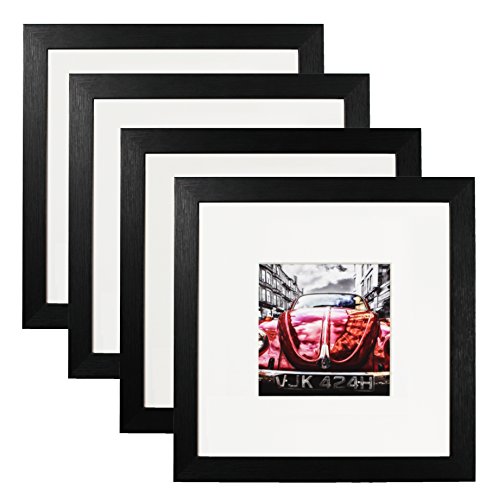 8 by 8 Picture Frame Black, Photo Tabletop Frames with Stand Set of 4, Plexiglass Cover, for Pictures 4x4 with Mat or 8x8 Without Mat for Kitchen Wall Decoration