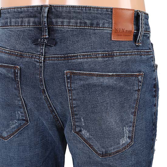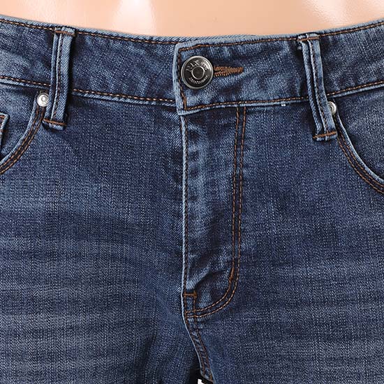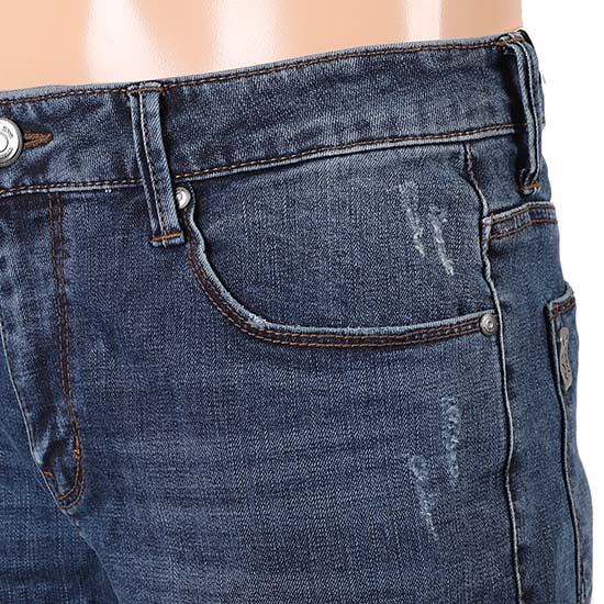 베이지 컬러가 은은하게 올라오는 미디움인디고 컬러와 강한 스톤워싱, 고급스러운 엠보캣과