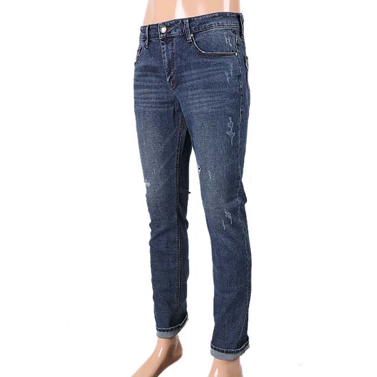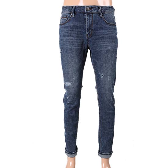 구제위 스티치 장식까지 다양한 워싱이 들어간 슬림핏의 데님입니다.