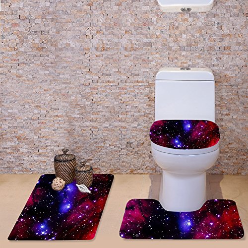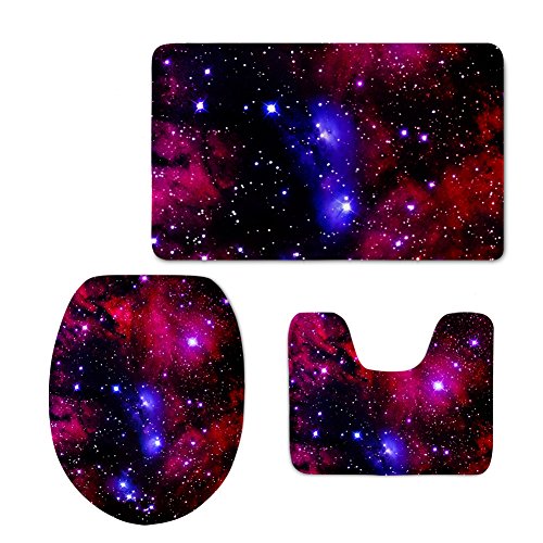HUGSIDEA Universe Space Design Bath Mat Set Soft Non Slip Bathroom Mats Contour Rug Toilet Lid Cover (3 Piece)