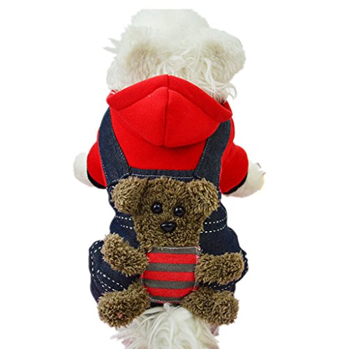 -. Feature : Pet dog coat. / Pattern Type:Cartoon bear. / Sleeve length:Half Sleeve. / Collar:Hooded. / Size:XS,S,M,L,XL,XXL.