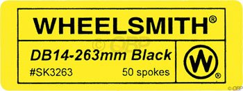 | Color | Black | | Unit of Sale | Bag of 50 | | Weight | 172g | | Length | 262mm | | Spoke Type | Butted | | Spoke Diameter | 2.0/1.7mm | | Defined Color | Black |