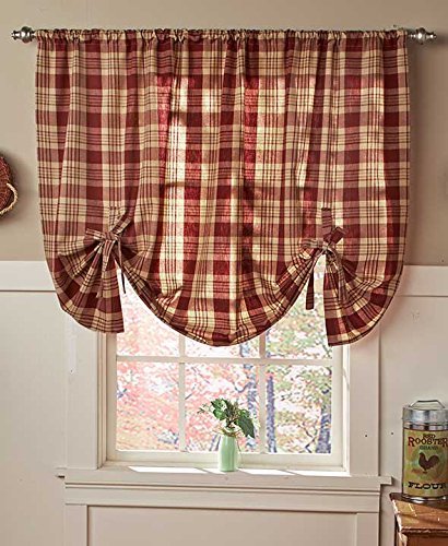 Country Check Tie-Up Window Curtain (Burgundy)
