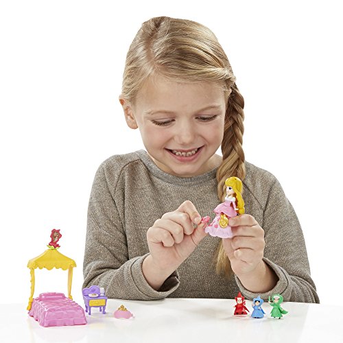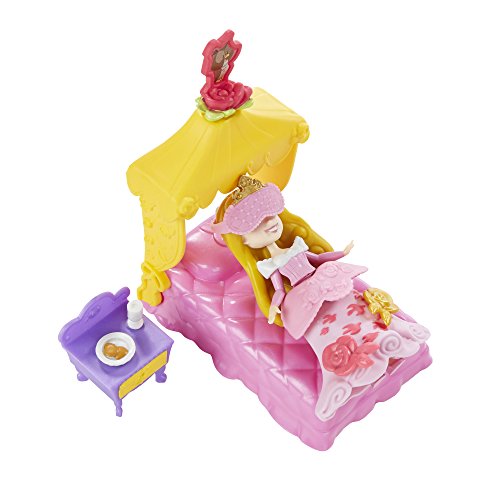 - Includes doll, bodice, peplum, skirt, canopy bed, 7 accessories, and 2 Snap-ins.