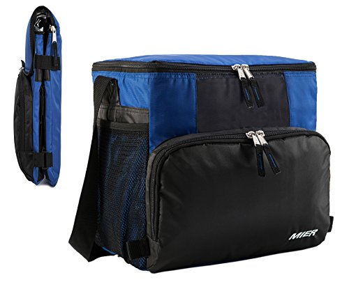 MIER 24 Can Large Insulated Lunch Bag for Men and Women Leakproof Cooler Bag, Collapsible, Blue