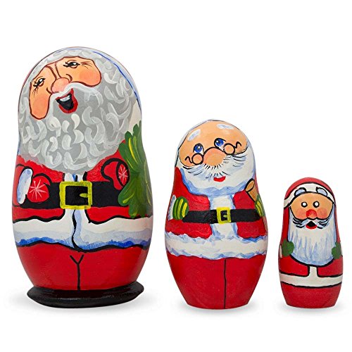 -. Title : 4.25" Set of 3 Smiling Santa Claus Figurines Wooden Nesting Dolls