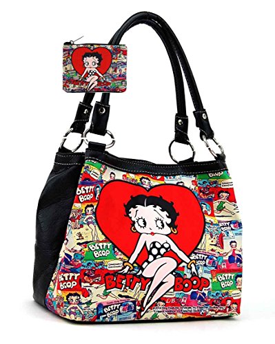 -. Brand : Betty Boop -. Color : Big Red Heart -. Department : womens -. Feature : Betty Boop cartoon purse and coin purse set / Plus NY key chain / Faux leather and Top zip closure / Officially licensed / More details in the description -. PackageQuantity : 2 -. ProductGroup : Shoes -. ProductTypeName : HANDBAG -. Size : Medium -. Title : Betty Boop Cute Handbag and Coin Purse Set, Cartoon Collection