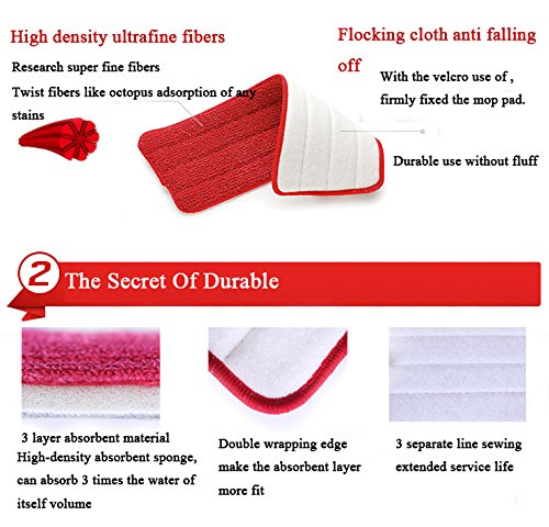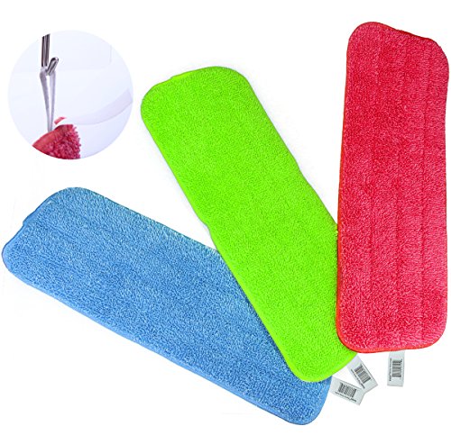 -. Feature : Different color 3pcs/pack, 1pc red 1pc blue 1pc green. / Easy to use, Stick it on the board of the mop, Then you can use it. / It can be wash by hand and machine, Repeated use, Affordable / Good Water absorption and detergency / It fit most of conventional size mop
