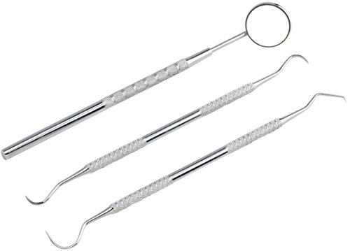 o HIGH-QUALITY, stainless steel tools that make the oral hygiene procedures easy and harmless! Stop using “handy tools” that are not meant for your mouth! Plus, we all know that proxabrushes, toothpicks and floss don’t always work! Even dentists are impressed about the professional design, yet low-price Dental Hygiene Tool Set! Universal Curette, Sickle Scaler, Chisel and Mouth Mirror are the tools to use in between your dentist visits!