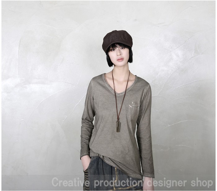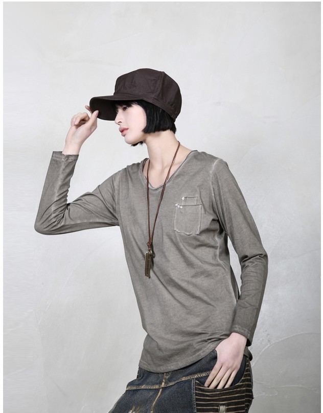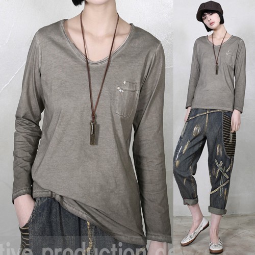 商品名:Tシャツ レディース 長袖 無地 ウォッシングカラー 春 2018 モード系 個性的 40代 ファッション