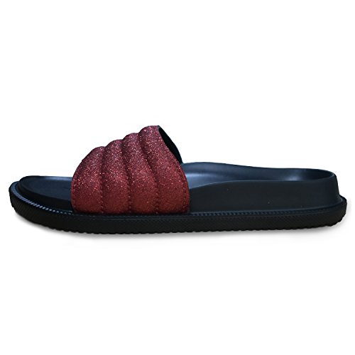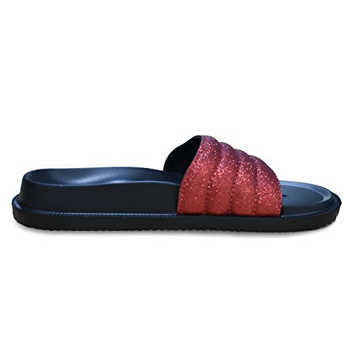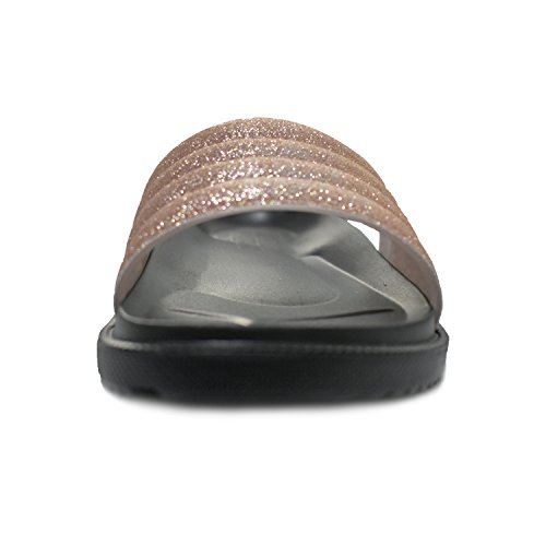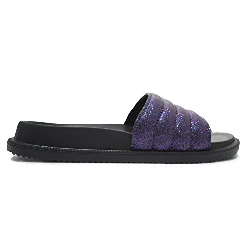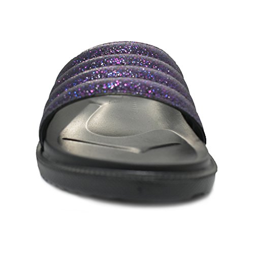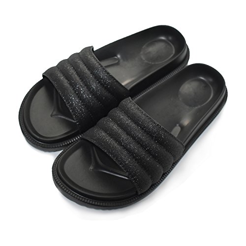 ManZu Women Sequin Slide Sandals With Arch Support Bling Flat Slippers Open Toe