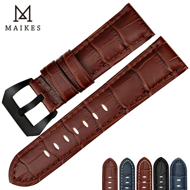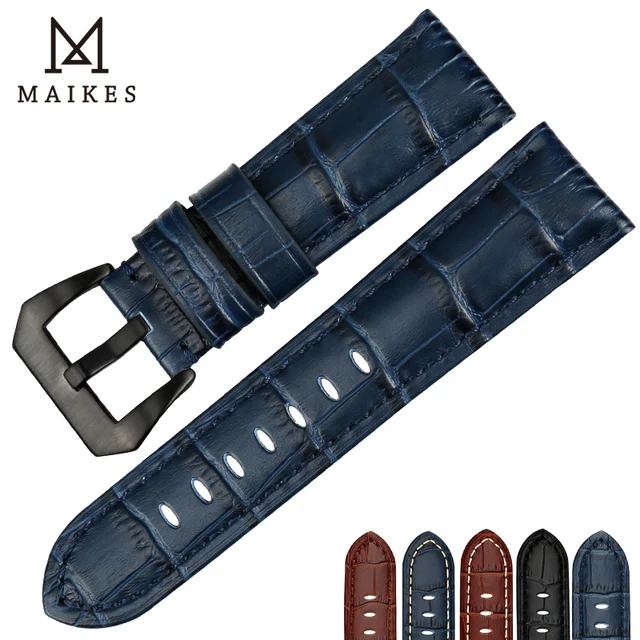 | [해외] Maikes 좋은 품질 줄 22 24 26 미리메터 시계 액세서리 팔찌 정품 가죽 스트랩 시계 밴드 블루 파네 |