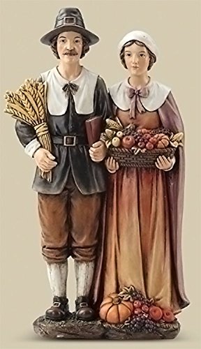 14" Thanksgiving Harvest Pilgrim Couple Resin Stoneware Figurine Decoration
