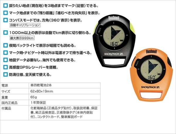 【商品名】GPSナビゲーター コンパクト/防滴仕様 ブッシュネル 【日本正規品】 バックトラックG2 ブラック(黒) 〔アウトドア/災害時/登山〕