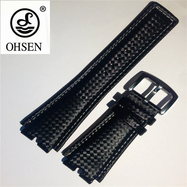 - OHSEN 새로운 제품 시계 팔찌 블랙 시계 가죽 스트랩 시계 밴드 AD0930 스테인레스 스틸 버클 시계 액세서리
