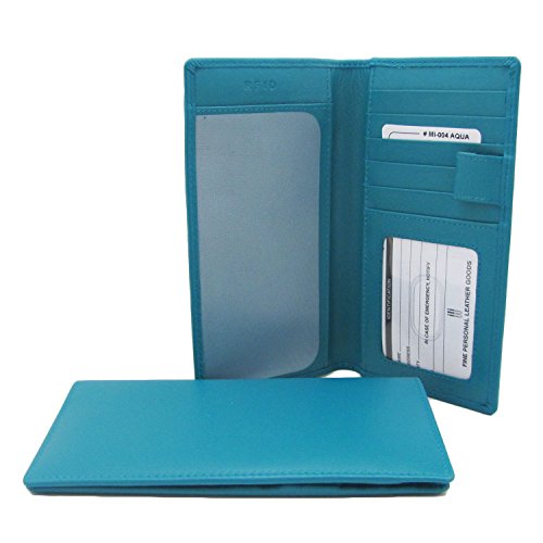 ili RFID Leather Checkbook with Pen Holder (Aqua)