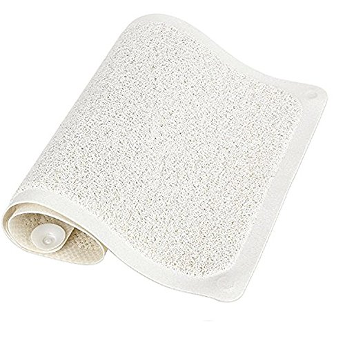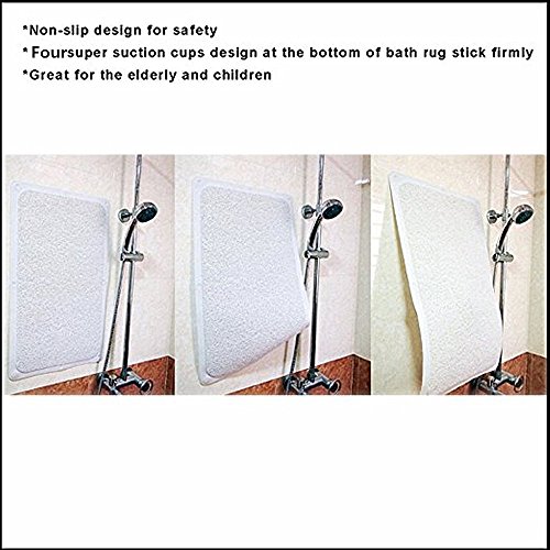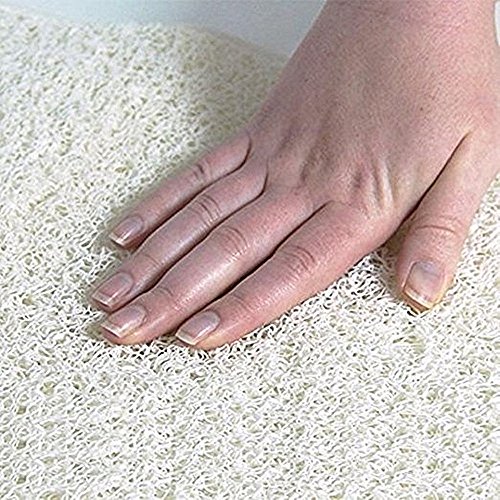 Size: 29Inch x 16Inch Water Flows Through: Imitate loofah sponge, thus has a food permeability and no stain will remain on it. Therefore do not make bathroom dirty.Mildew and stain resistant