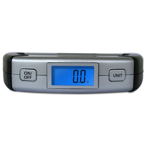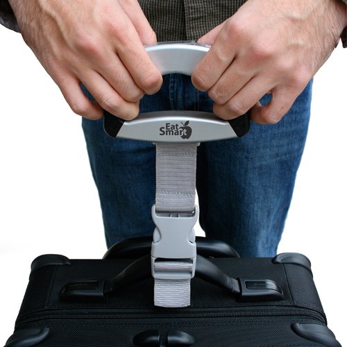 -. Feature : EatSmart SmartGrip two-handed design - Easier lifting of heavy lage / 110 lb / 50 kg capacity - Graduation of .1 lbs / .1 kgs / Easy-to-read backlit LCD display / Compact and lightweight design - Perfect for any traveler / Auto Calibated; Auto Power-Off; Runs on 1 long-life lithium battery (included); 100% EatSmart Satisfaction Guarantee
