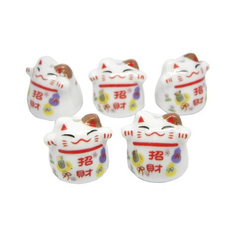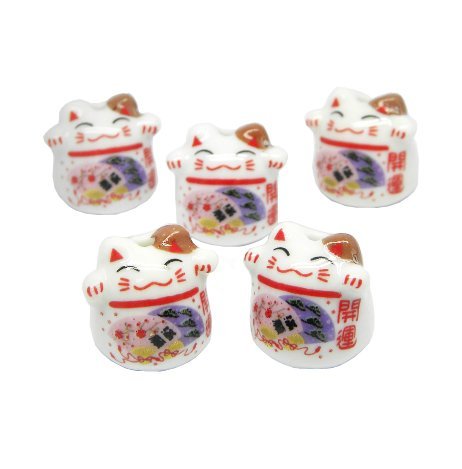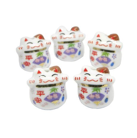 Jzcky Shzrp Ceramic Beads with Lucky Cat Pattern for Making Pendant Etc.