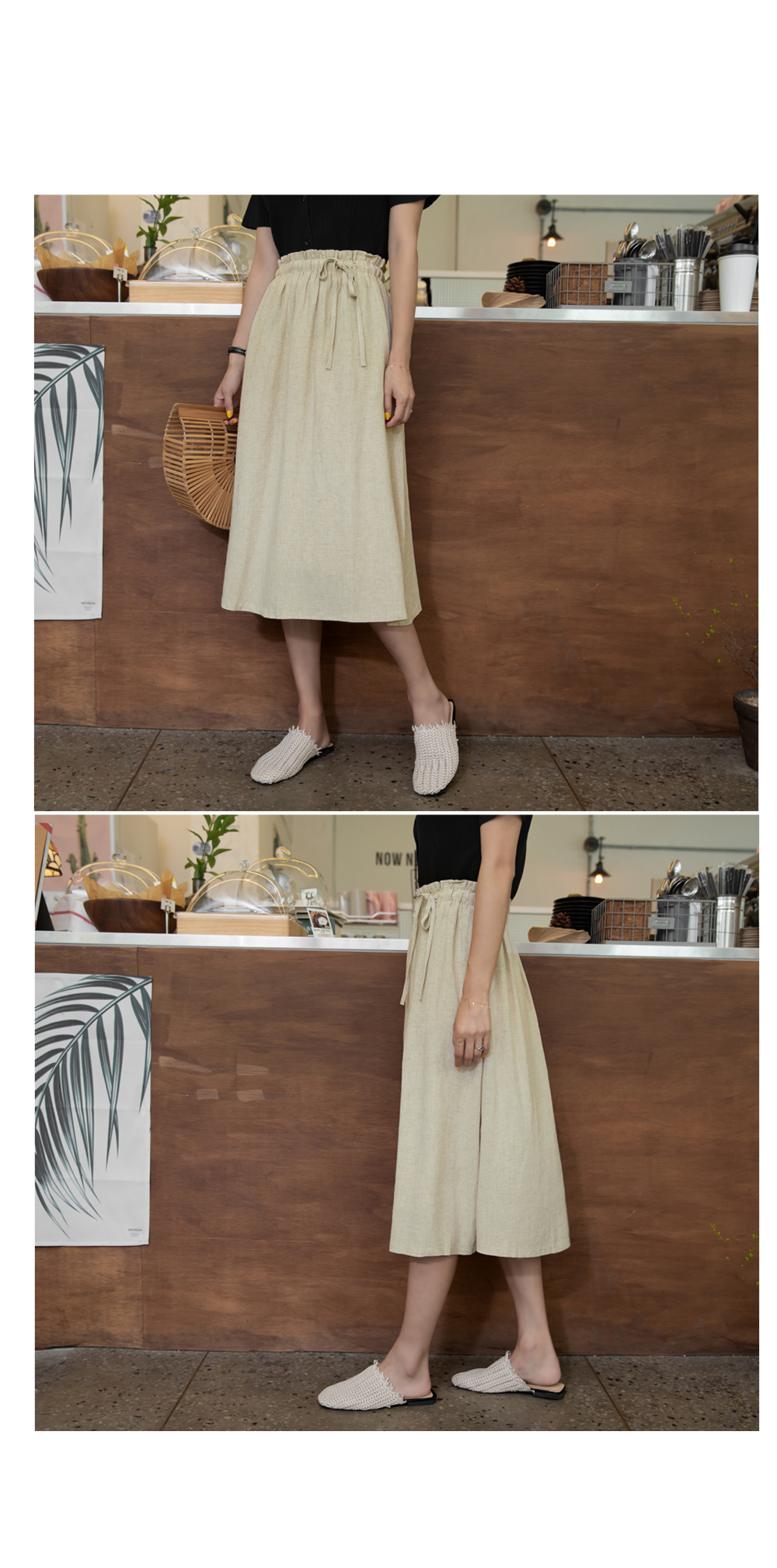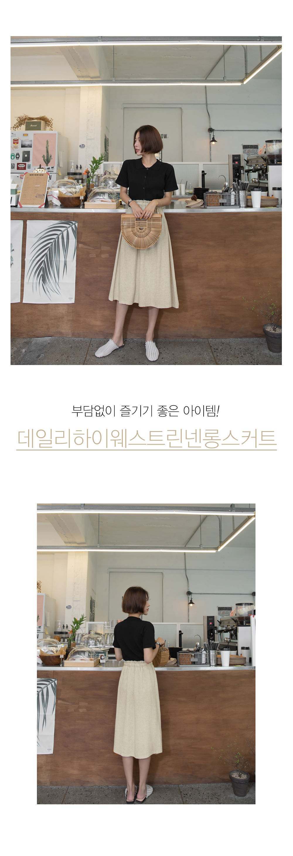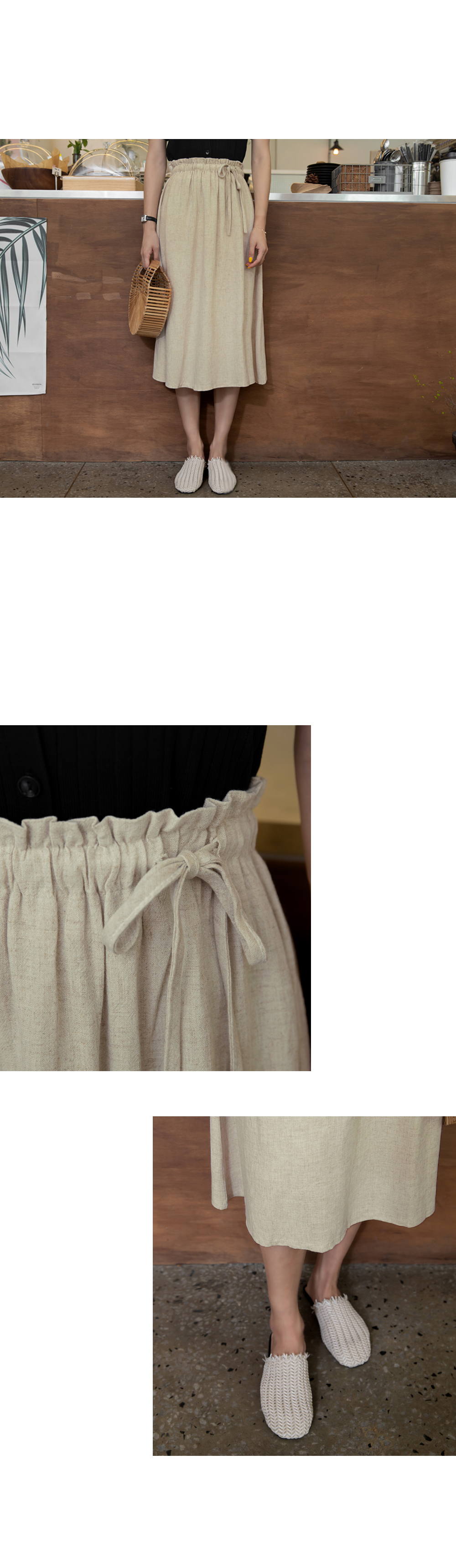 린넨혼방소재로 봄부터 가을까지 가볍게 착용가능한 롱스커트에요.