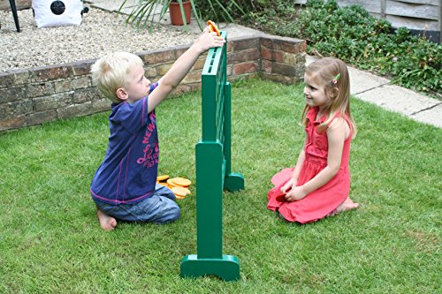 Product Description? Includes: 21 yellow and 21 red discs. Perfect for a wide variety of ages so everyone can join in! ? Use indoors and outdoors. ? Assembles in minutes. ? Full size 29" High x 33" Wide0
